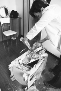 據(jù)房先生介紹,事發(fā)時休息室里共有兩臺保險柜,另一臺保險柜的背面也留有被撬過的痕跡,但由于該保險柜比較堅固才沒被小偷撬開。房先生用被盜的保險柜存放現(xiàn)金等常用物品,而用另外一臺保存房證、存折等。房先生告訴記者,被盜保險柜內除了有幾萬元現(xiàn)金外,還有手機等其他貴重物品!斑@個小偷太囂張了! ”房先生說,“我辦公室里放了不少酒,還有巧克力等食品,小偷開了一瓶紅酒喝,而且吃了不少巧克力。 ”房先生認為,大概是沒有工具打開紅酒,小偷便在窗臺上敲碎了酒瓶口。記者看到辦公室的地面上依然留有玻璃碎片和已經干透了的紅酒痕跡。